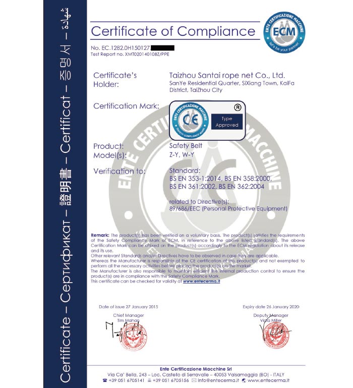 泰州市三泰健康科技有限公司(原 泰州市三泰繩網有限公司),本公司成立于1988年12月22日,至今近30年的生產歷程。多年來的生產經驗,加之我們不斷的創新,已經建設成為集研制、開發、生產、銷售為一體的龍頭企業。公司生產線由捻線車間、制繩車間、織網車間、織帶車間、織(絞)繩車間、安全網組裝車間、安全帶組裝車間、檢驗室等組成。企業現有職工155人,企業管理人員6名,市場研發人員8名,專業質檢人員2名,......